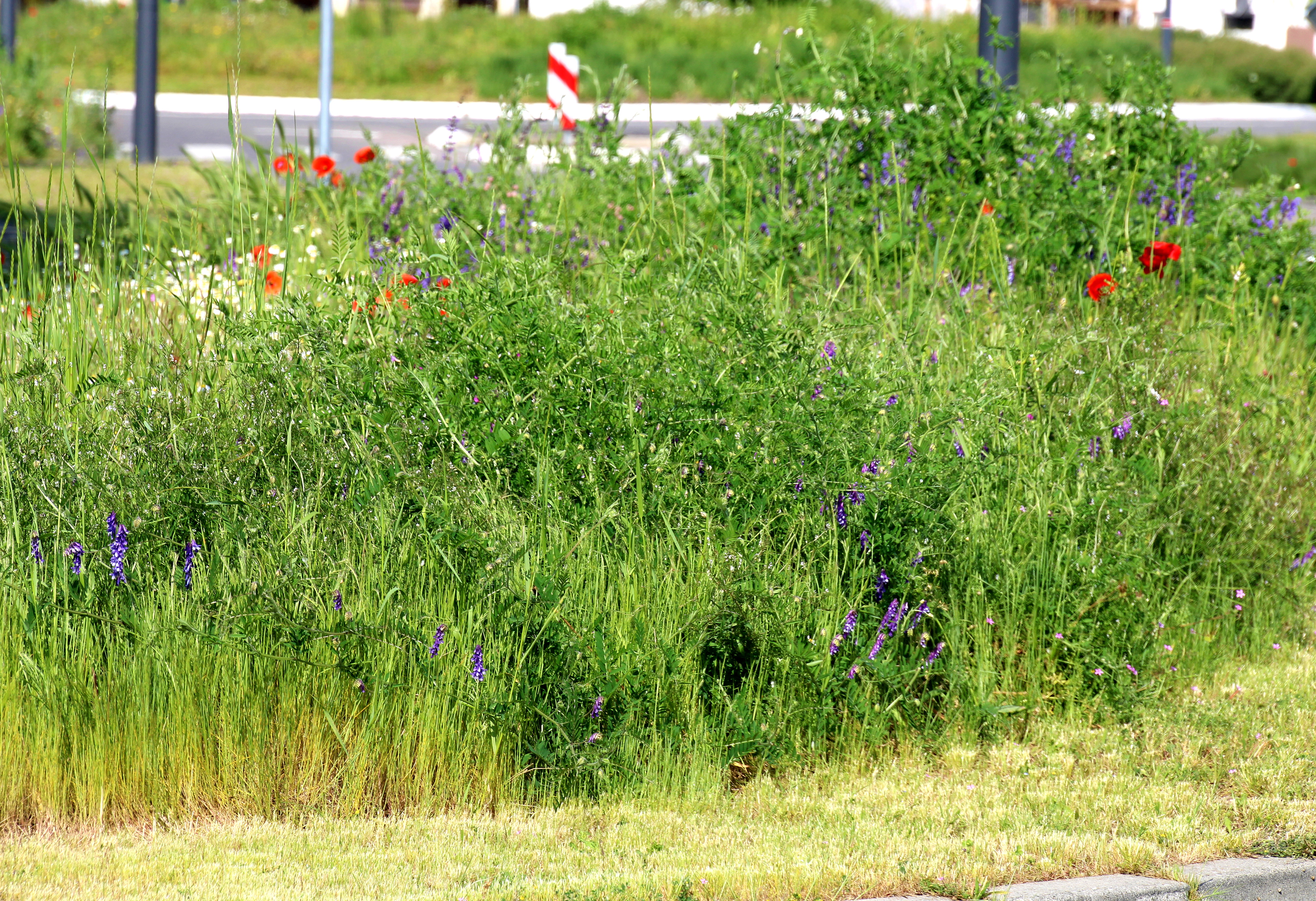 Wichtig ist es, die Pflanzen im Blick zu behalten. Wenn sich konkurrenzstarke Wildkräuter ausbreiten, kann durchaus auch ein situationsangepasstes Mähen erforderlich werden. „Bei der Extensivierung ist nichts in Stein gemeißelt“, erläutert Umweltbeauftragter Dominique Stang. Jede Grünfläche habe ihre eigenen Gesetze und biete individuelle Voraussetzungen für ihre Flora. Extensivierung bedeute daher nicht, die Grünflächen sich selbst zu überlassen. Ziel sei es, aus dem Bestand heraus eine blühwiesenähnliche Pflanzengesellschaft zu etablieren: durch eine dem Standort angepasste pflanzen-, insekten- und klimafreundliche Mahd. Diese Entwicklung brauche Zeit.