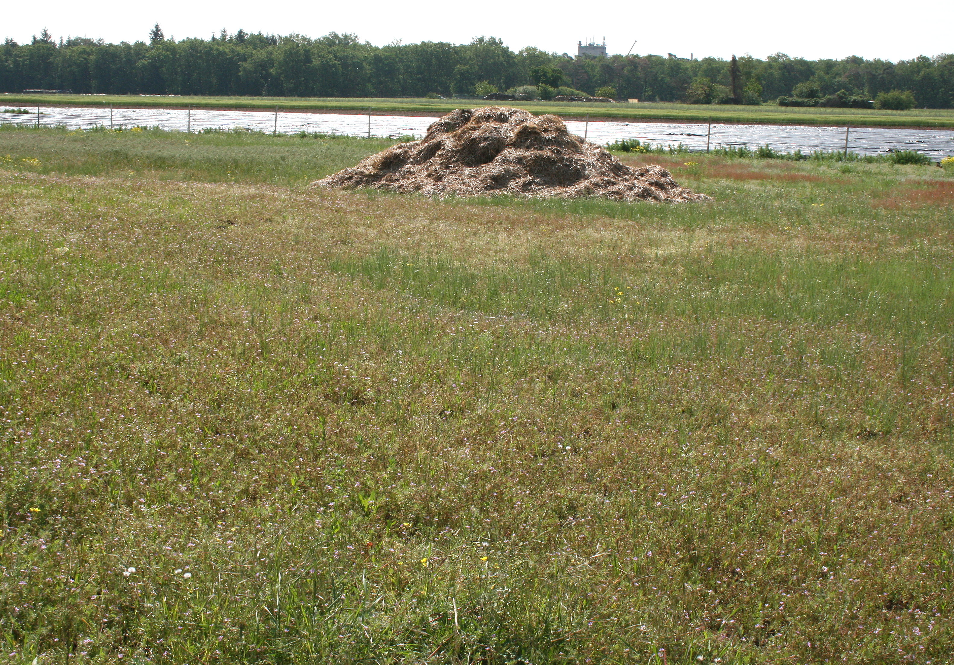 Bei der herbstlichen Pflege der Habitatflächen werden die Pferdemisthaufen entfernt. Im darauf folgenden Frühjahr werden, noch vor Beginn der Brutzeit, neue Misthaufen an geringfügig veränderten Stellen gesetzt.
