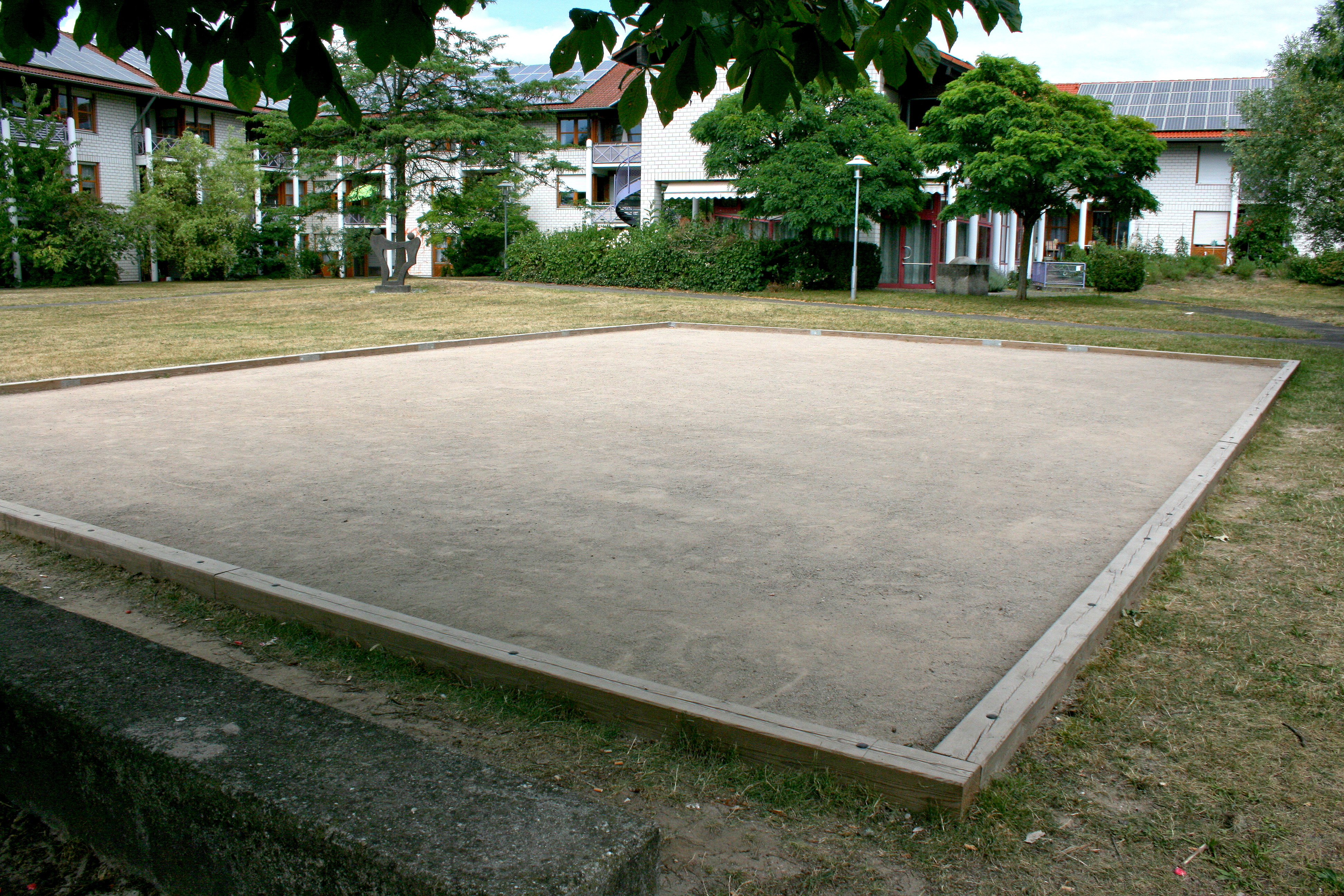 Mit Präzision die Kugel rollen lassen: Auf dem Spielplatz in der Bahnhofsanlage befindet sich eine öffentlich zugängliche Boule-Bahn, die täglich bis zum Einbruch der Dunkelheit genutzt werden kann.