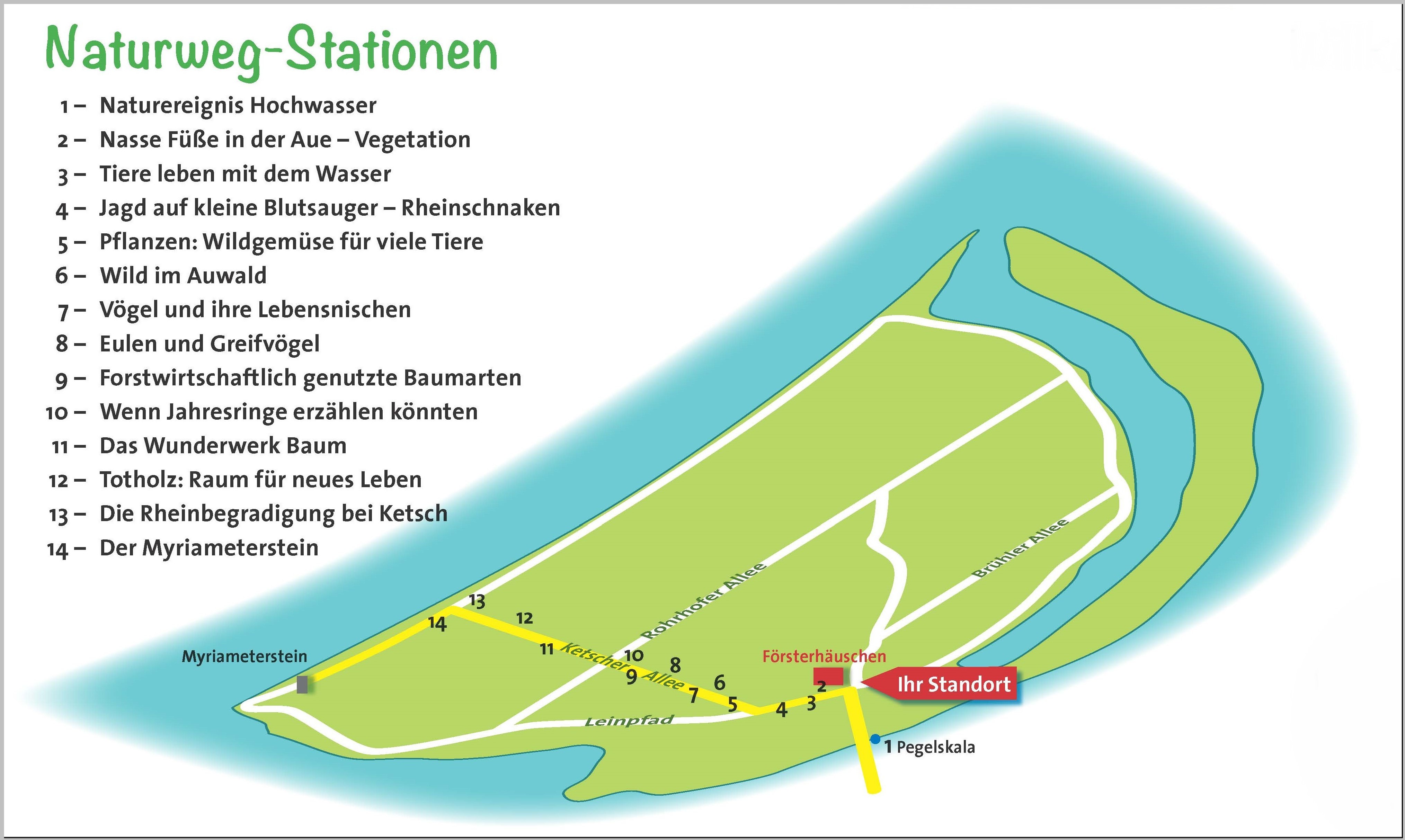 Der "Naturweg Ketscher Rheininsel" ist ein Projekt der Lokalen Agenda Ketsch. Wer auf der Rheininsel spazieren geht, kann auf dem rund zwei Kilometer langen Lehrpfad, anhand von 14 Schautafeln, Wissenswertes über Flora und Fauna der Rheininsel erfahren. Auch für Kinder sind Informationen entsprechend gestaltet und so manches Mal kann und soll man etwas anfassen, beispielsweise ein Stück Holz.