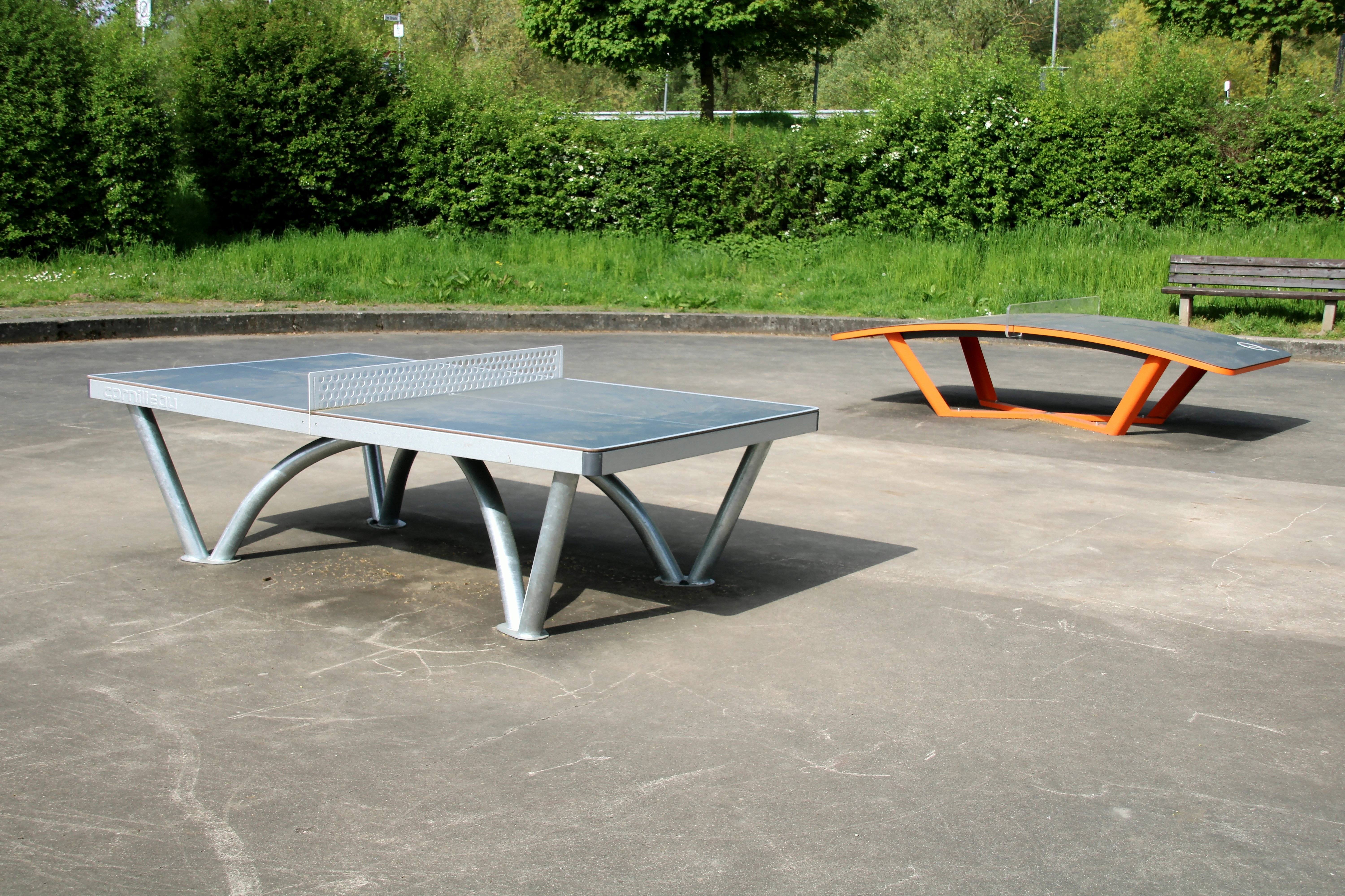 Gleich neben der Pumptrack-Anlage lautet das Motto: Ran an den Ball! Dort kann Tischtennis und Teqball - eine Art Fußballtischtennis auf gewölbter Platte - gespielt werden. sas