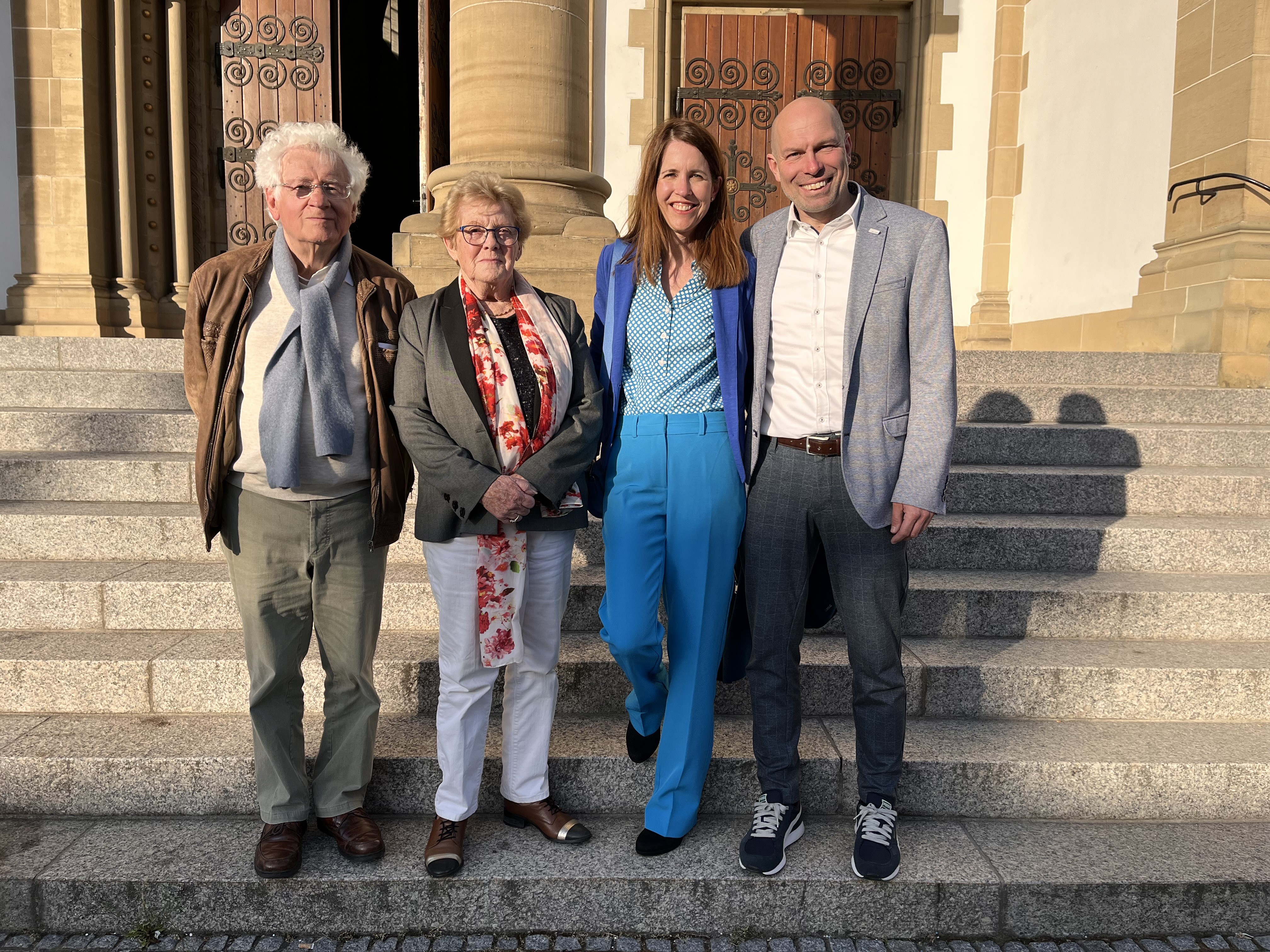 Marc Goua, Bürgermeister i.R. der Partnergemeinde Trélazé, und seine Frau Francoise sind mehrere Tage zu Besuch in Ketsch und nutzen die Gelegenheit, Freunde wiederzusehen. Auch ein Treffen mit Bürgermeister Timo Wangler und seiner Frau Katja gehört dazu. Es gibt viel zu erzählen und der Austausch verläuft einmal mehr in herzlicher Verbundenheit. Zu den besonderen Erlebnissen gehört der gemeinsame Besuch des Musiktheaters Tatjana Worm-Eberhardt in der Veranstaltungsreihe KulturKircheKetsch.