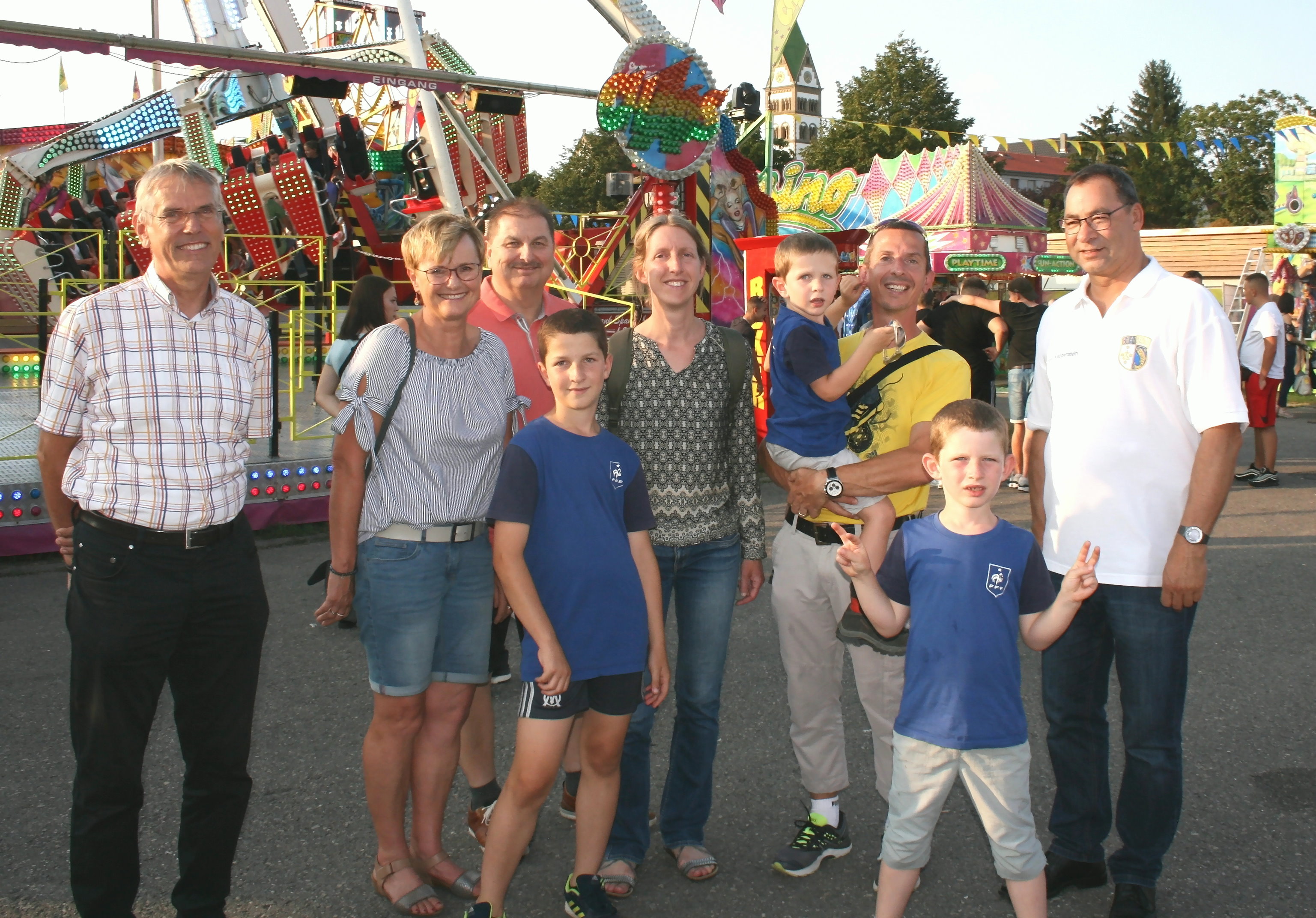 Bürgermeister Lamine Naham kommt mit seiner Frau Amélie und seiner Tochter Amyna nach Ketsch und besucht gemeinsam mit Bürgermeister Timo Wangler und seiner Frau Katja das Backfischfest.