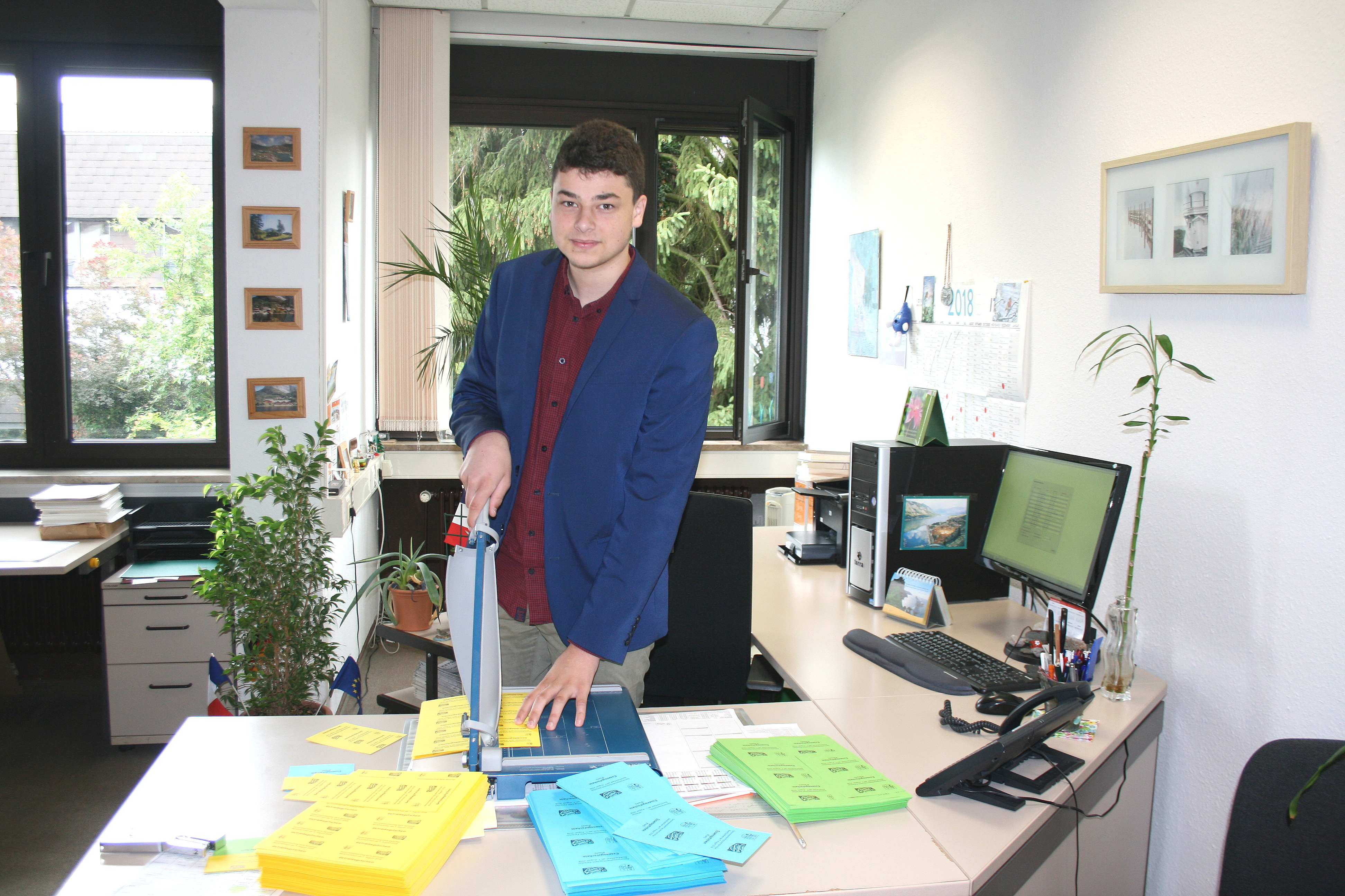 Louis Vigneron, Student der Kommunikationswissenschaften und Touristik in Angers, absolviert ein zweimonatiges Praktikum im Ketscher Rathaus. Mit großem Interesse, wachem Verstand und schneller Auffassungsgabe meistert er alle Aufgaben mit Bravour. Er nimmt an zahlreichen Veranstaltungen teil - unter anderem bei der Radtour mit dem Bürgermeister und beim "Tag der kleinen Forscher" im "alla hopp!"-Park - und lernt bei diversen Ausflügen Ketsch und die Umgebung kennen.