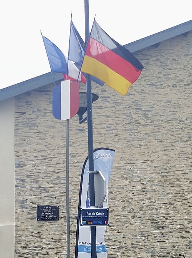 Anlässlich des 15-jährigen Bestehens der Jumelage zwischen Ketsch und Trélazé erneuern Bürgermeister Timo Wangler und Bürgermeister Lamine Naham mit ihren Unterschriften ihr Engagement für die Jumelage - „im Geiste der Brüderlichkeit, der Zusammenarbeit und der Offenheit.“ Drei Tage weilt die Delegation aus Trélazé in Ketsch und verbringt unvergessliche Stunden, unter anderem auf dem Backfischfest. Neben dem Festakt in der Rheinhalle gibt es einen weiteren Höhepunkt: die Einweihung des Wegweisers am Marktplatz-Kreisel.