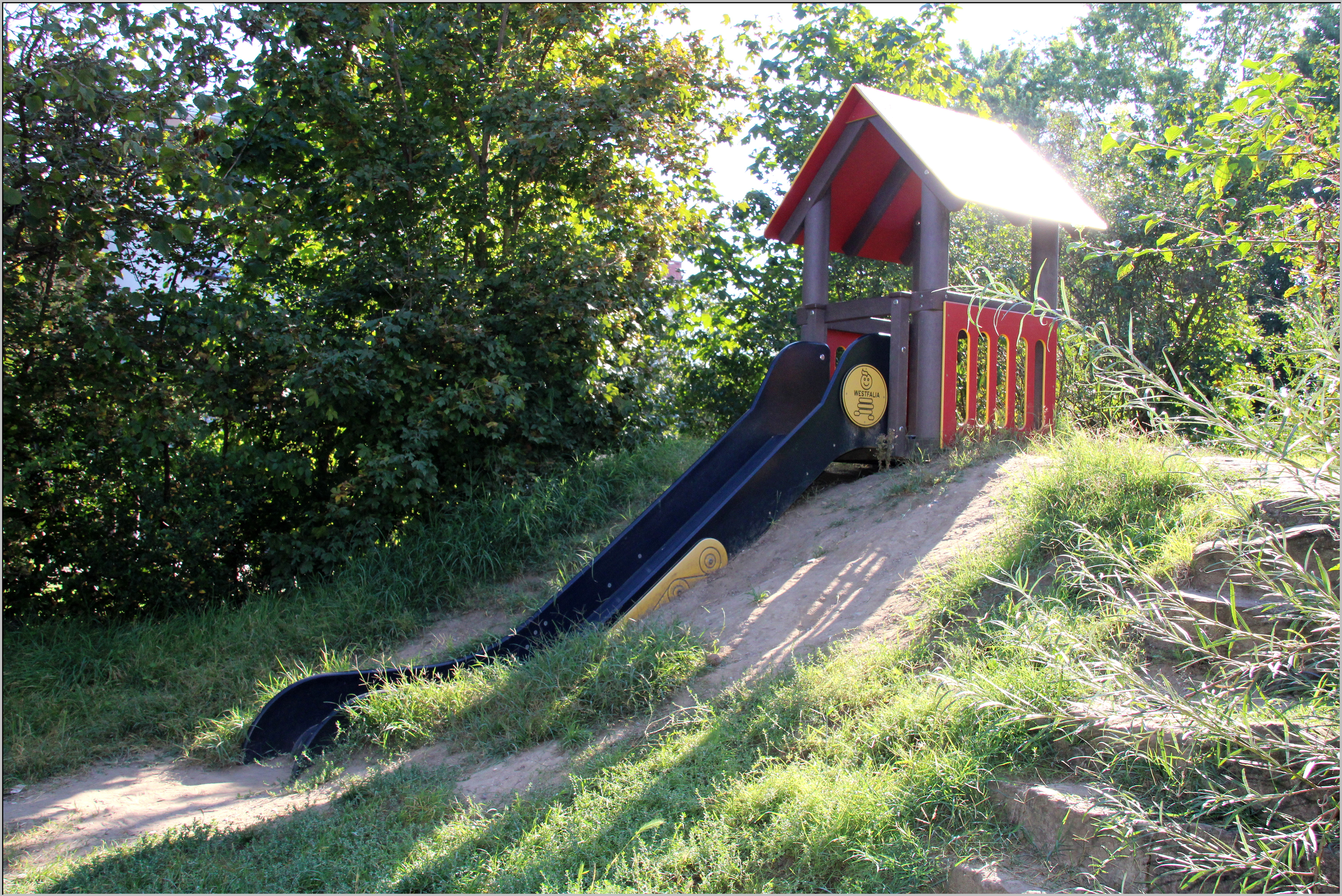 Der große, naturnahe Spielplatz an der Ecke Edisonstraße / Am Bildstock, hält alles bereit, was das Kinderherz begehrt. Büsche und Bäume laden zum Versteckspielen ein. Der Fußballplatz bietet Gelegenheit zum Auspowern. Sitzmöglichkeiten vorhanden. Foto: Janson