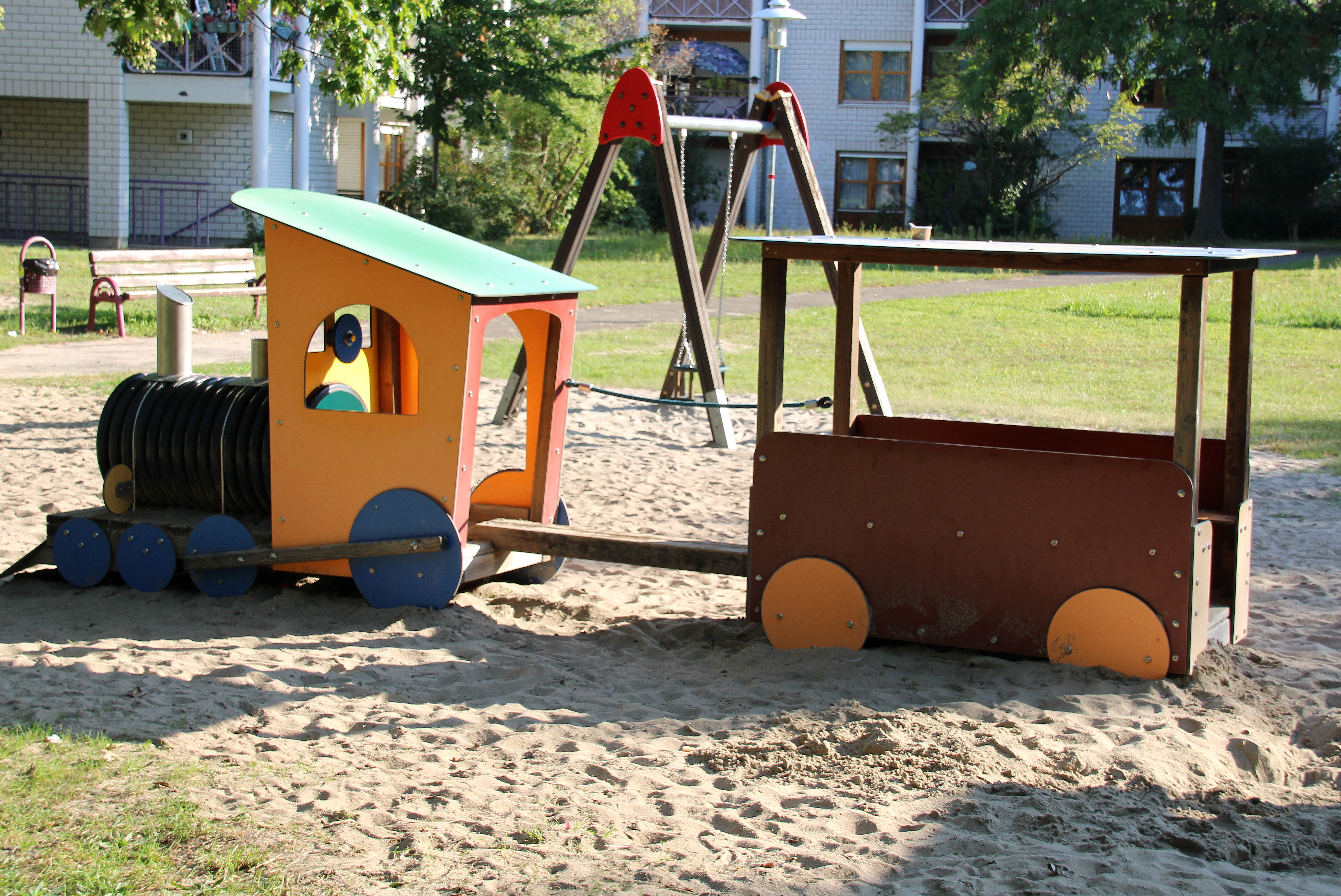 Belebter Spielplatz im Ortszentrum mit Spielgeräten für Groß und Klein, umgeben von altem Baumbestand mit vielen Versteckmöglichkeiten für Kinder. Auch Sitzgelegenheiten sind genügend vorhanden. In unmittelbarer Nähe befinden sich Einkaufsmöglichkeiten. Foto: Janson